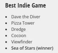 至于《潜水员戴夫》为什么会被提名最佳独立游戏,客观来讲,或许并非都是TGA的问题。毕竟2023金摇杆奖的“最佳独立游戏”也提名了《潜水员戴夫》,只不过最后得奖的是《星之海》。