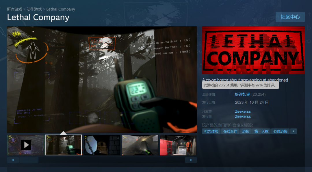 最近,一款恐怖游戏《致命公司(Lethal Company)》在steam上突然爆火。