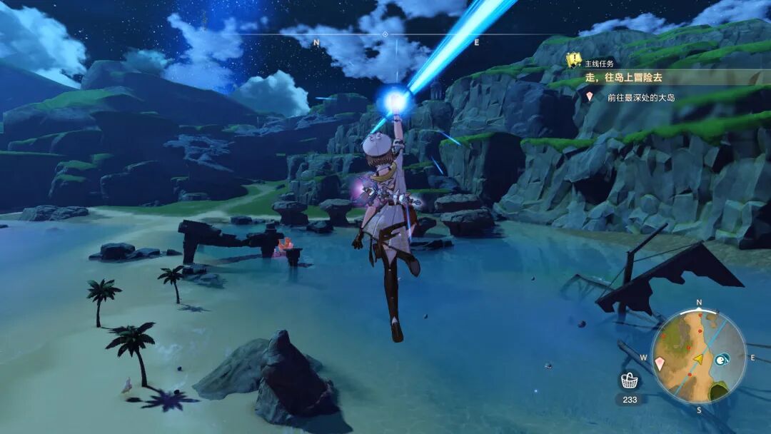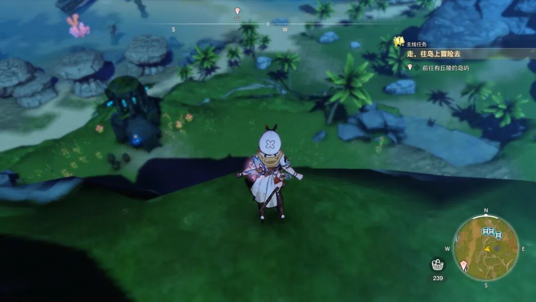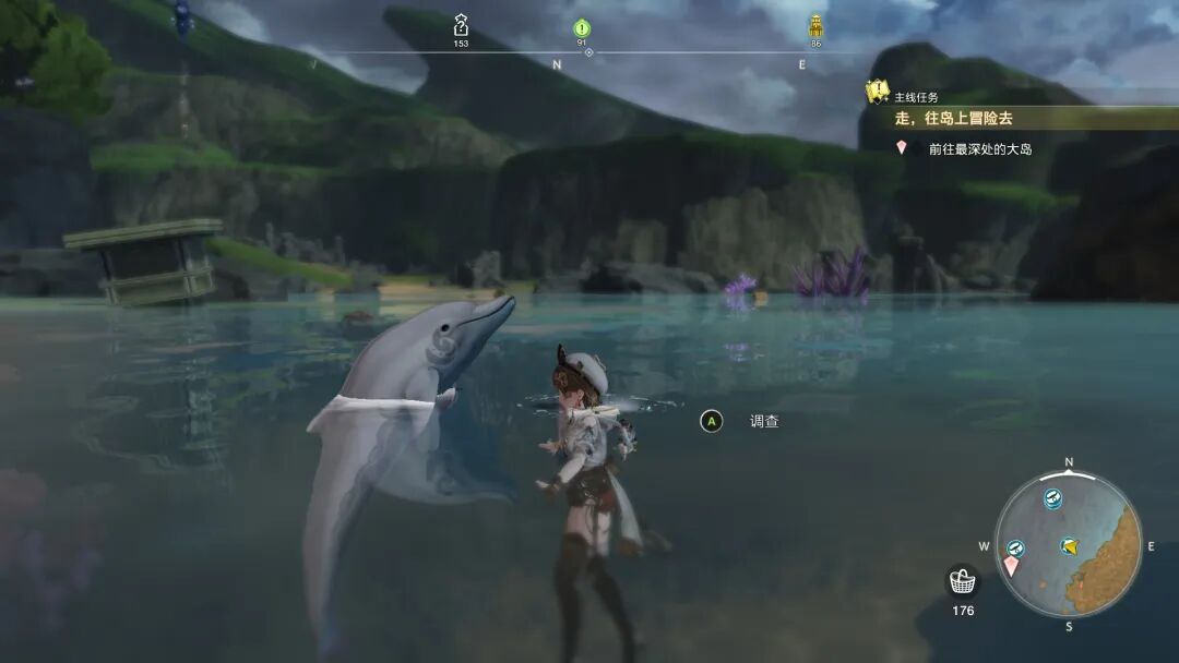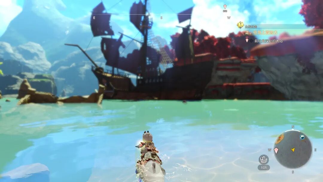 但这种堆砌带来的臃肿在游戏中后期得到了补偿。当你逐渐上手、慢慢融入这个世界的时候,你会发现本作的设定带来了前所未有的自由度。消失的空气墙、广袤的场景、可以无限畅游(还能骑海豚)的水域、在所有游戏内容中存在感很强的钥匙和钥匙带来的、在中后期爽感十足的战斗系统——玩家不再是被设定了边框的几张线性地图中的奔跑者,而是实实在在穿行于天地间、为大家排忧解难的炼金师。
