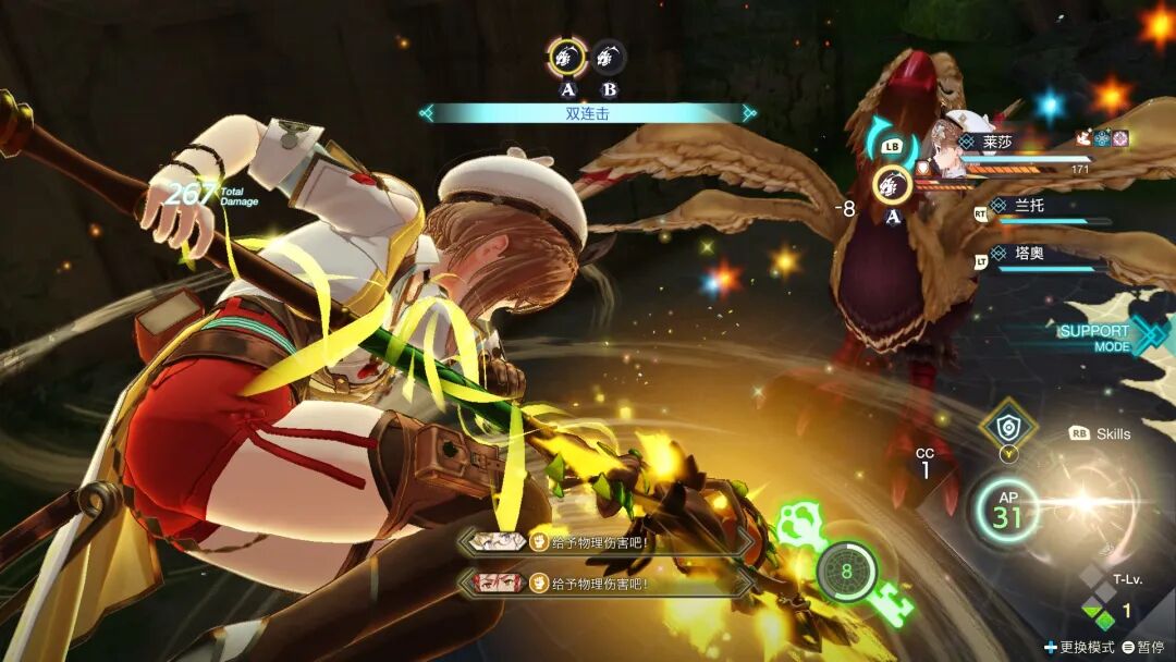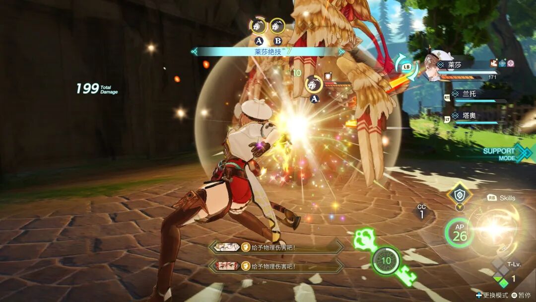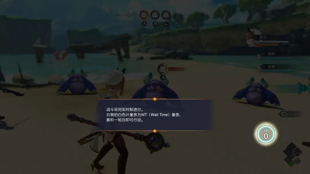 除了翻天覆地的地图之外,《莱莎3》中改变最大的就是战斗了。他们放弃了一直以来使用的回合制模式,采用了“半即时”的战斗系统。当然,祖传的“AP放技能、CC丢道具、通过攻击积攒战术等级”这些设定并未改变,只是用另一种形式的WT系统代替了回合。