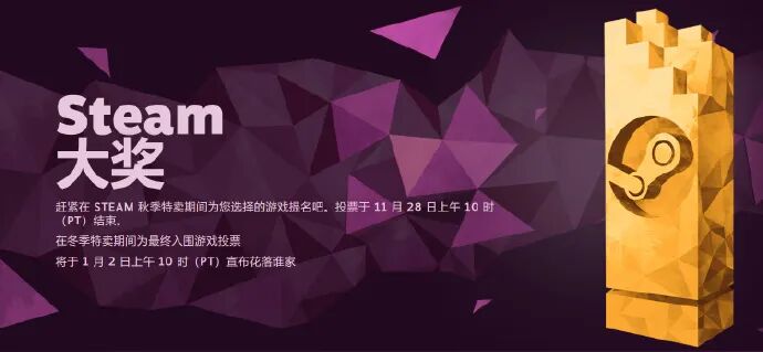 Steam是目前最大的PC游戏平台,而该平台也专门设立了“Steam大奖 ”,这是一个完全由Steam玩家提名、投票评选的游戏奖,专门用来奖励Steam上的优秀游戏作品。