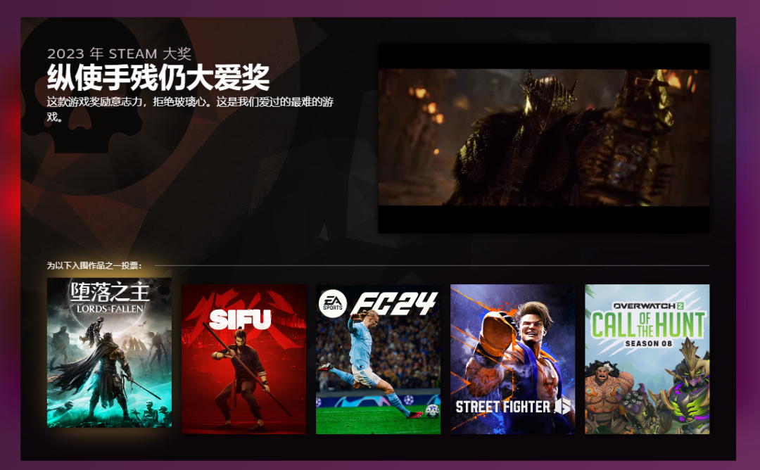 纵使手残仍大爱奖提名:《堕落之主》《sifu师父》《EA SPORTS FC 24》《街头霸王6》《守望先锋2》