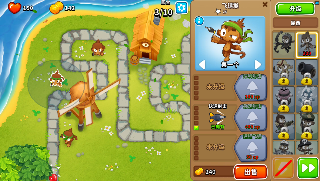 从上面的描述大伙应该能看得出来,解锁诸多种类的猴子或是其他作战单位,其实只能算熟悉《气球塔防6》游戏内容过程的一小部分。