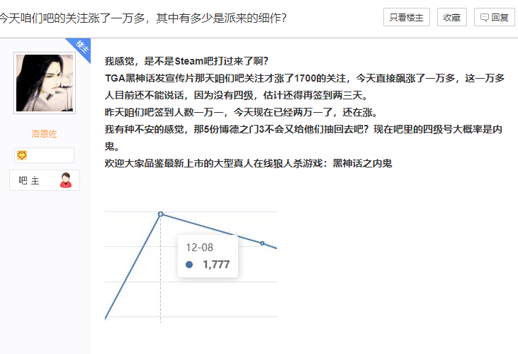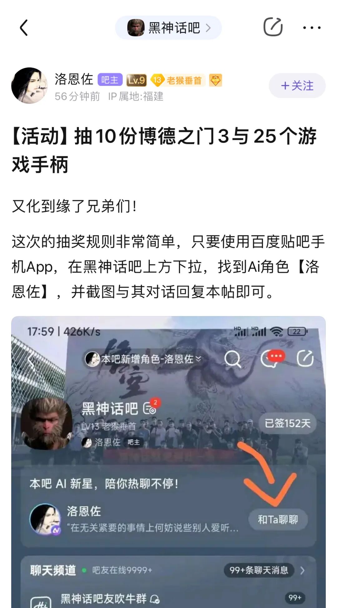 这么看的话,洛恩佐作为黑吧吧主想要给这个吧增加热度和关注人数,想要靠抽奖实现似乎有些难度,更何况距离《黑神话:悟空》正式发售还有足足八个月之久,在这个吧里似乎也想不到聊什么。