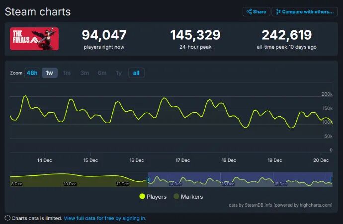 在过去的四天里,《浩劫前夕》的平均同时在线玩家数是238人。这个数字并不多,但却说明了还有数百人在坚持玩这个游戏,确实是令人费解。《浩劫前夕》已经在Steam上停止销售,购买了游戏的玩家可以无限制地退款。