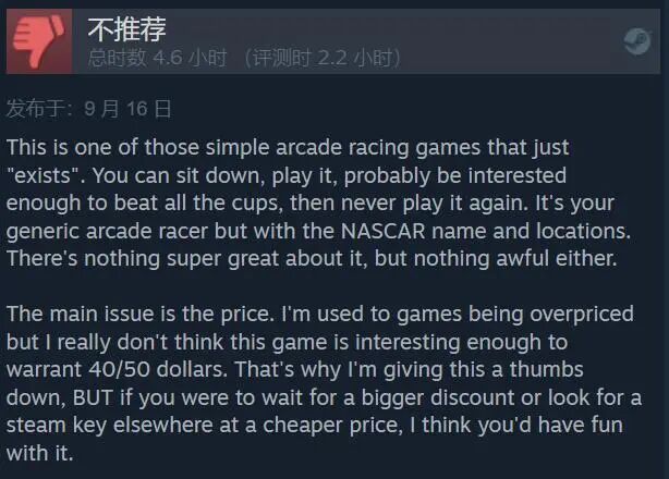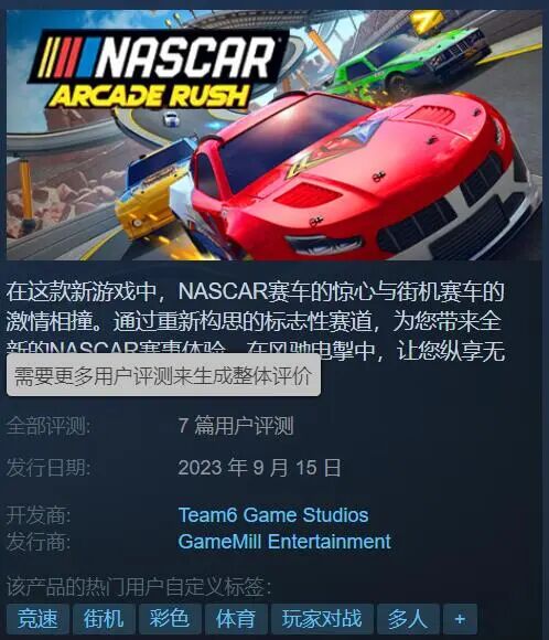 这是那些平庸普通的街机赛车游戏之一,你可以坐下来,玩它,可能有足够的兴趣收集所有的奖杯,然后再也不玩它了。这就是一款篇平凡无奇的街机赛车游戏,但带有纳斯卡的名字和比赛地点。它没有什么特别伟大的地方,但也没有什么糟糕的地方。