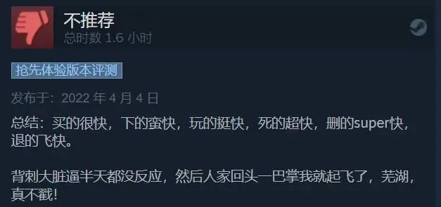 总结:买的很快,下的蛮快,玩的挺快,死的超快,删的super快,退的飞快。