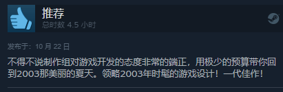 不得不说制作组对游戏开发的态度非常的端正,用极少的预算带你回到2003那美丽的夏天。领略2003年时髦的游戏设计!一代佳作!