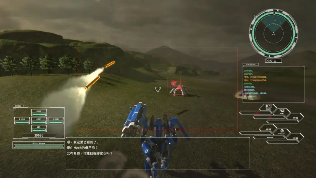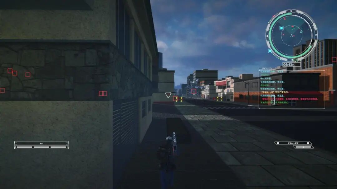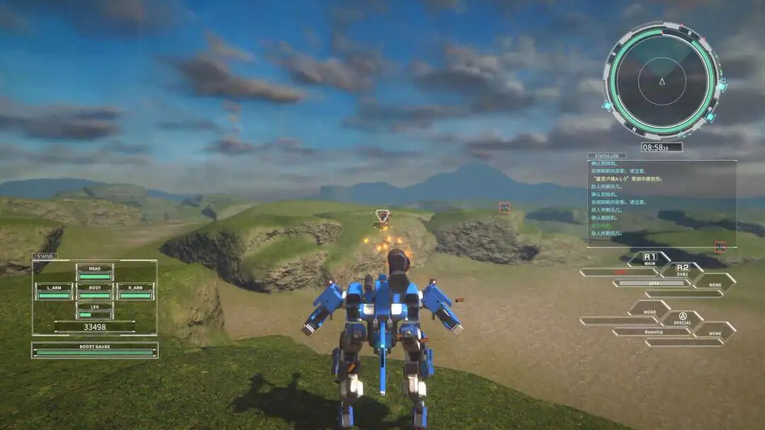 需要吐槽的是本作的机甲都已经用上光枪和自动武装了,射击发出的子弹还是拥有较高延迟的飞行弹道。由于本作攻击判定基于锁定敌方目标后的红框,所以没有任何的辅助瞄准再加上飞行弹道,射击战斗带给玩家的体验相较于其他机甲游戏要差上许多。