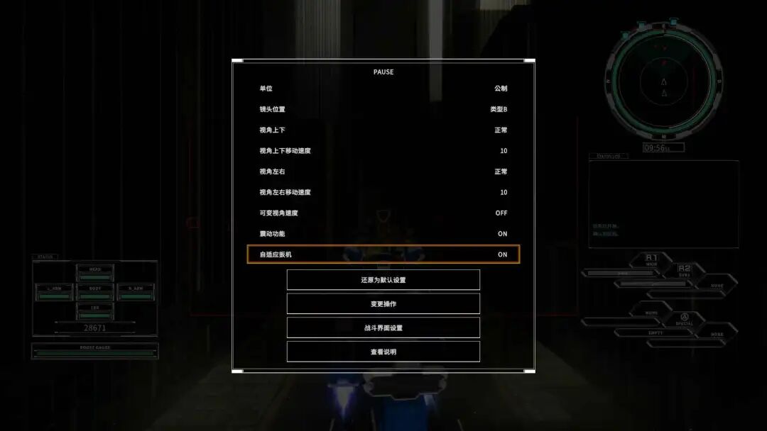 值得一提的是《改装机甲大战》对DualSense手柄的适配,机甲在落地、受到敌人攻击、与建筑物碰撞时都会给与不同程度的震动反馈,就连撞到路边“不起眼”的路灯时也一样。优秀的自适应扳机自然也少不了,当玩家在操控机甲飞行冲刺时L2键会出现明显的阻尼感,给玩家带来拟真的启动体验。当然,如果你不习惯随时可以打开暂停关闭震动功能和自适应扳机选项。