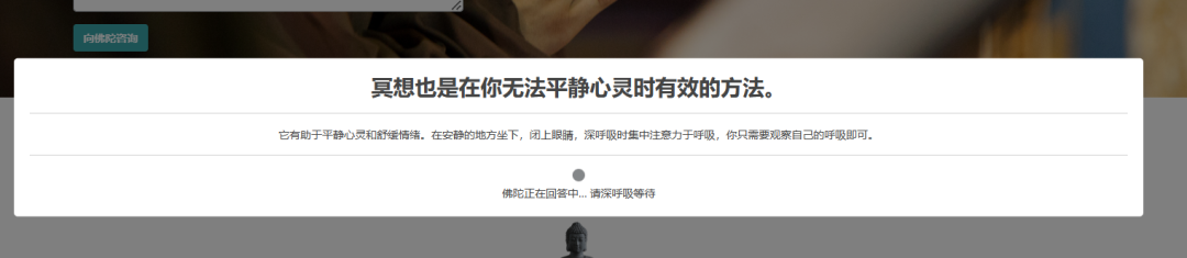 不得不说,网站的氛围感包装的就很好。输入问题后,等待时间还引导用户做呼吸吐纳和冥想练习,可以说是非常照顾用户体验了。