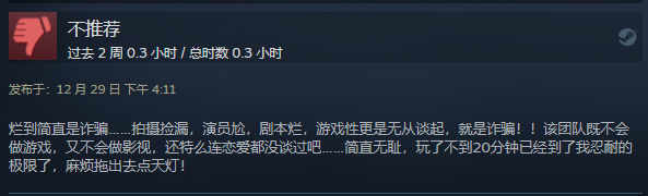 《完蛋!我也能追到美女了!》Steam好评率仅49%