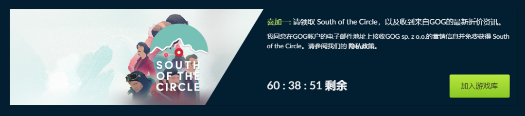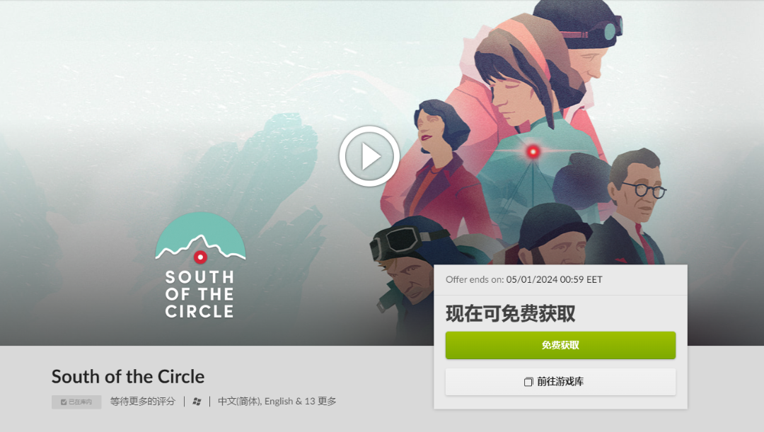 GOG限时免费领游戏!在2024年1月1日22:00之前,大家可以在GOG平台免费获取冷战背景剧情向游戏《极圈以南(South of the Circle)》,支持中文。