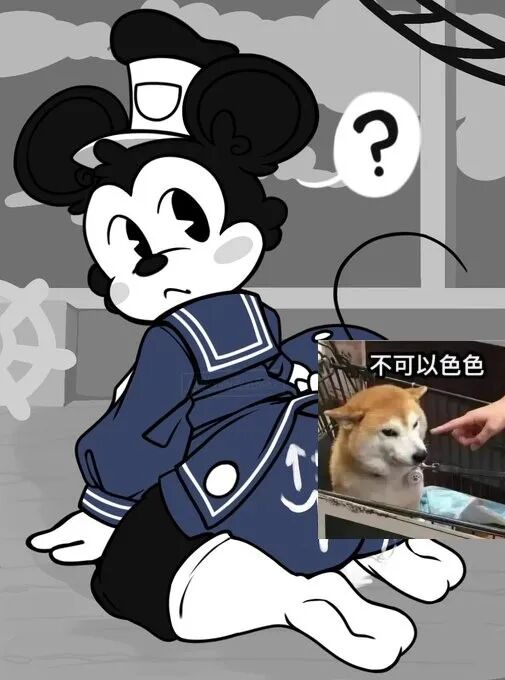 当然,除了带有恐怖元素的作品,互联网上也迸发出了大量关于初代米老鼠的二创,其中不乏网友们的整活,以及大伙们“爱看”的作品。