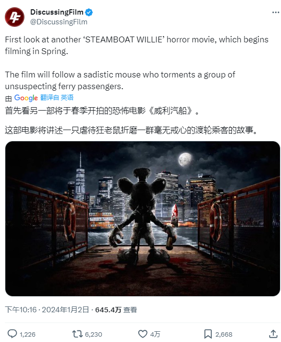 于此同时,另一部以初代米老鼠为主角的恐怖电影也宣布了自己的存在,并且计划于春季开拍。