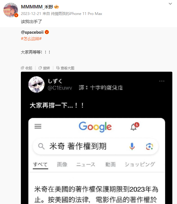 虽说版权意识强点并没有什么问题吧,但迪士尼这种为了维护版权,态度过分强硬且不人性化的行为让很多人都看不顺眼。或许出于一种“叛逆”心理,其实大伙早在12月的时候就开始对初代米老鼠“蠢蠢欲动”了。