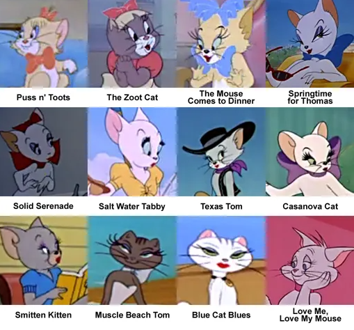 根据爱好者的不完全统计,猫和老鼠中也登场过不少小母猫。