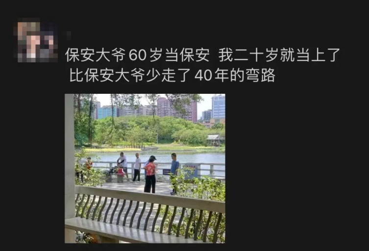 有的人甚至直接就去应聘了保安,在他们看来,“工作的尽头就是保安”,现在当保安简直就是少走了四十年的弯路。