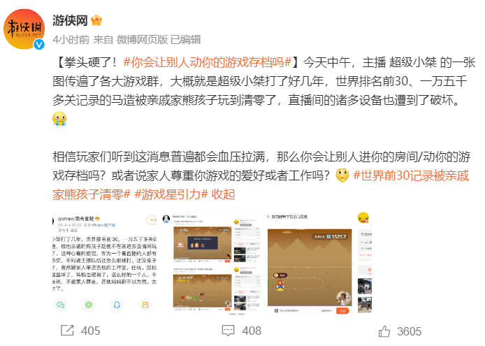 这件事在短时间内引起了轩然大波,不少人都对杰哥这次痛失游戏存档的遭遇感到惋惜和心痛,而“超级小桀”本人也被带上了微博热搜第二。