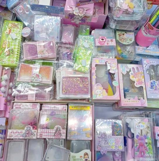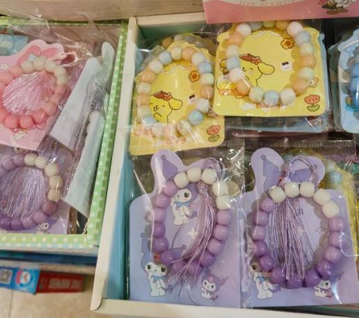 甚至在文具店里,还有和知名卡通形象“联名”的手串,每一串都有不同的风格,我想也足以让小学生们为其停留及尖叫了。