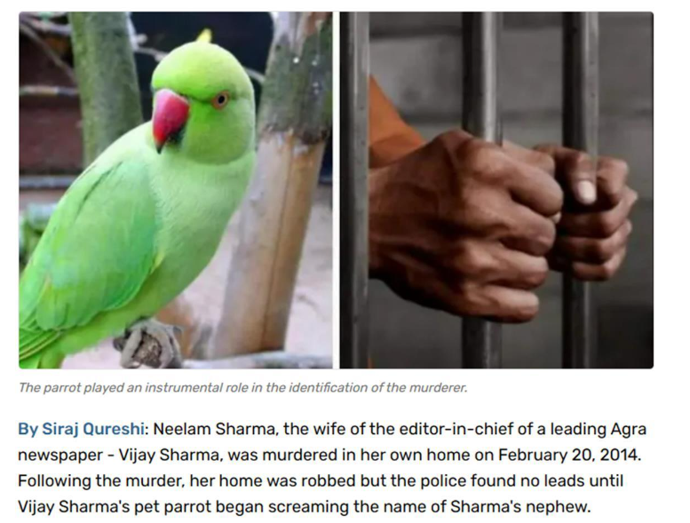 鹦鹉神探不只存在在虚构的作品中,和文章开始时的案件一样,在现实中同样频繁出现。