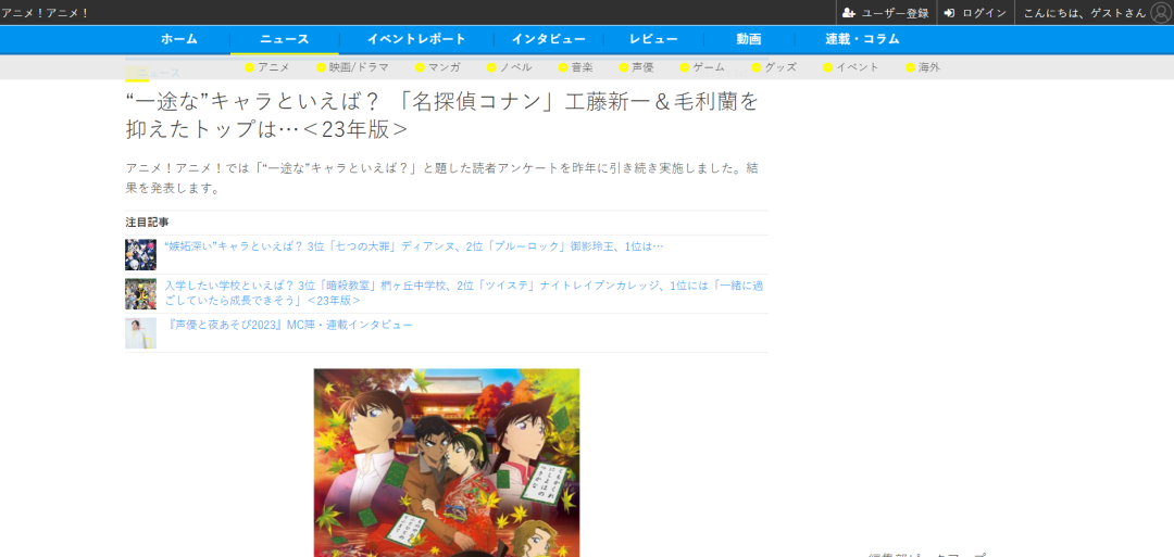 在日本知名动画网站AnimeAnime上会定期举办观众投票,在一次“你的动漫男性初恋角色”投票中工藤新一拿下第二,在“一心一意的动漫角色”中拿下榜首。