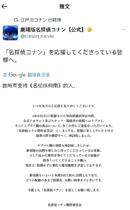 战火随着情绪激动的粉丝蔓延到推特上,他们先是用中文发表自己强烈的不满,这些消息扩散在海外柯南的粉丝群体,也有大量冲动的言论直接艾特到官方脸上。