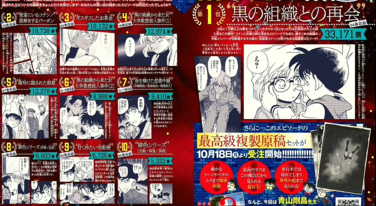 这幅争论中心的柯哀T恤图,出自2021年柯南100卷漫画人气投票中,以几乎碾压的姿态夺得了投票的第一,所以青山穿这件衣服好像也没什么不对的。