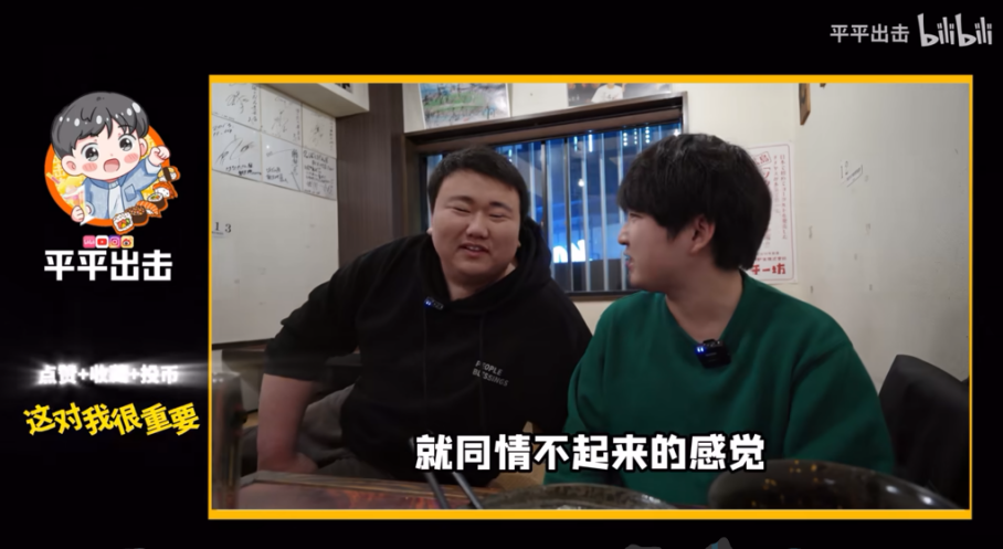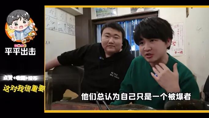 这段视频里的两人都是中国留学生,较瘦的一位是B站的up主“平平出击”,另一个则是频道的摄影师“通哥”,也经常作为捧哏和“炫饭时刻”在节目中出镜。