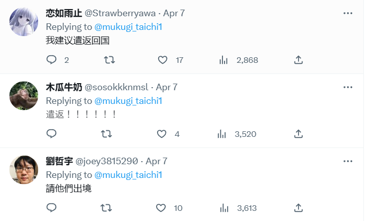 相关评论区里也不乏大量中文谴责的声音,各方评论纷纷加入,要求遣返两个学生。