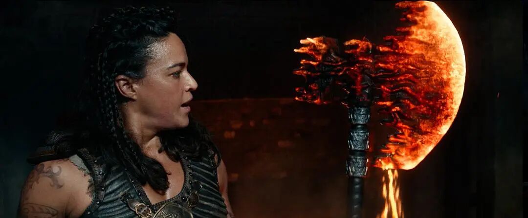 不仅如此,各种职业本身的限制,以及游戏中装备、技能的确切数据,电影中并没有一板一眼的给观众展示面板,但却依靠不同角色的简短口述以及实际使用,让原本并不了解DnD或该类型电子游戏的观众,也能毫无障碍的看懂这整个“游戏世界”——不就是一伙人组队击败坏人拿到最终的任务物品吗?