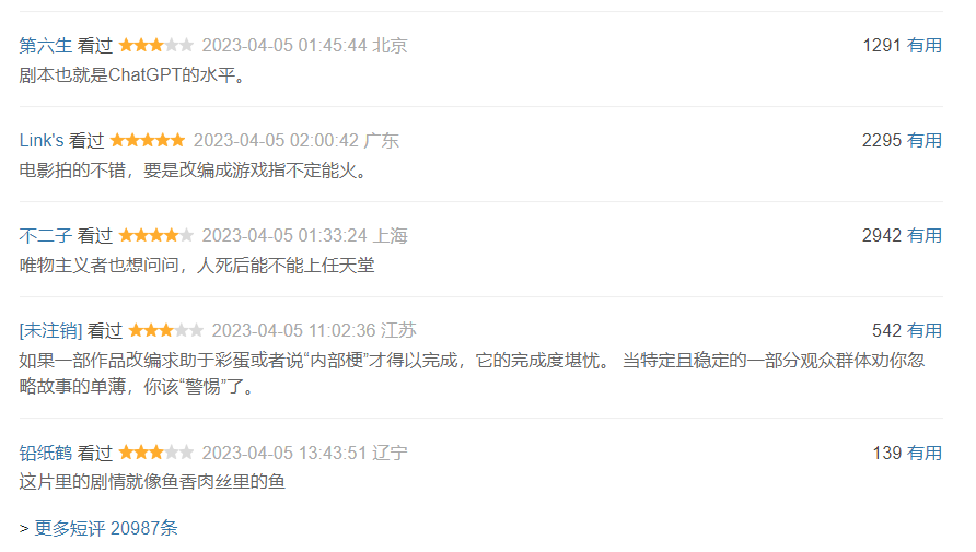 当然,在影评区有看到部分人认为这是“不尊重原作”的地方,甚至直接骑脸输出认为这是向zzzq妥协的结果。