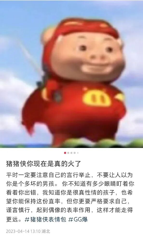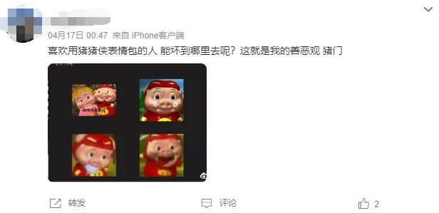 或者以劝导的方式,呼吁使用猪猪侠表情包的人注意言行举止,“不要让人以为猪猪侠是个是个多坏的男孩。”