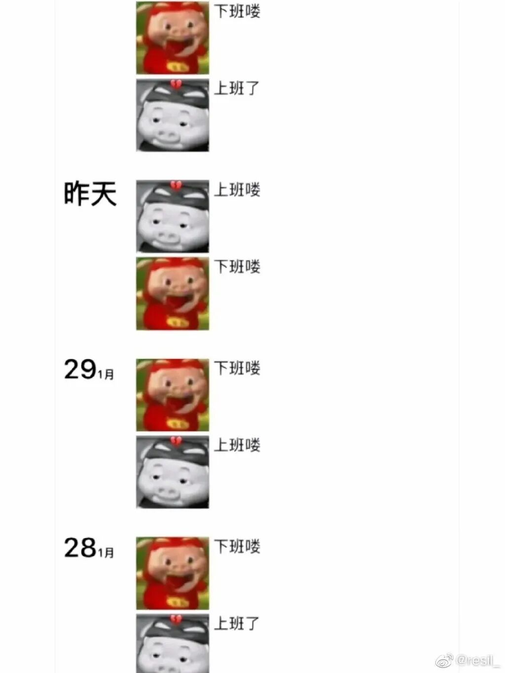 有的打工人用猪猪侠表情包代表自己上下班之际的精神状态;
