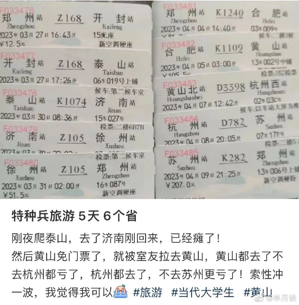 因为“特种兵式旅游”的人一般都是大学生,所以为了节约时间,他们一般会选择在周五没课的时候,或者双休的清晨出发。