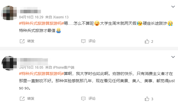 当然,也有不少打工了几年的社畜被大学生们的旅行方式所吸引,也想要来一场“说走就走的旅行”。