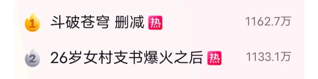 然后“斗破苍穹 删减”的话题也被大伙冲上了微博和抖音的热搜。
