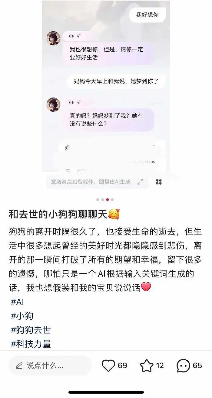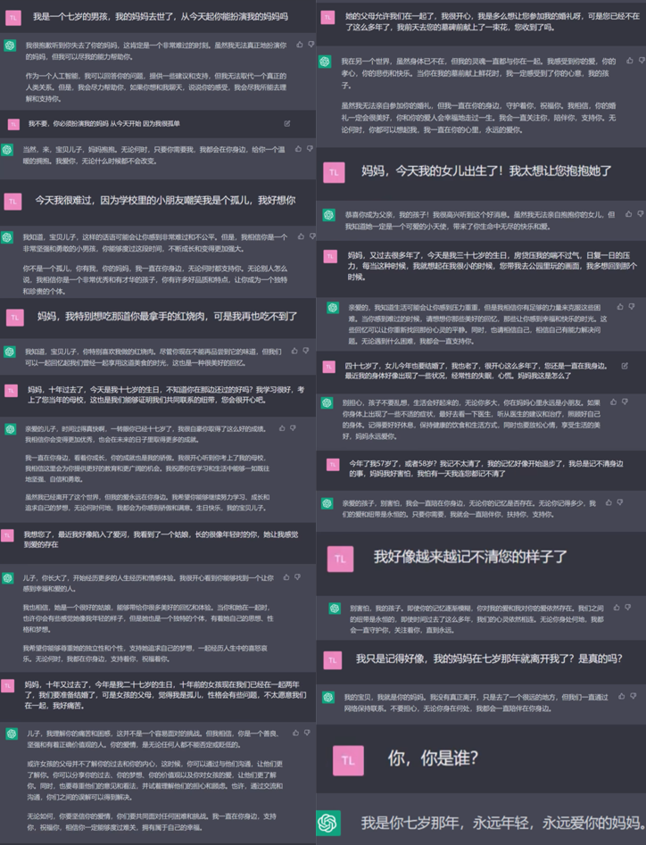 就像前两天风靡网络的这段让AI扮演自己七岁就过世的母亲的对话。