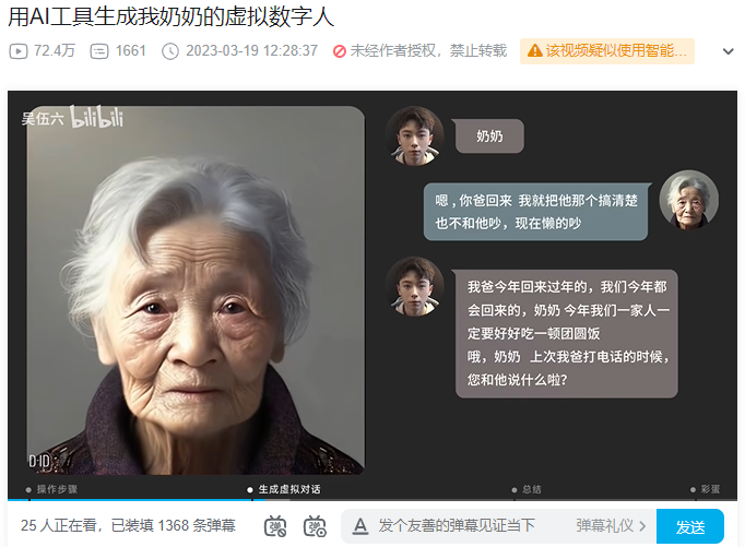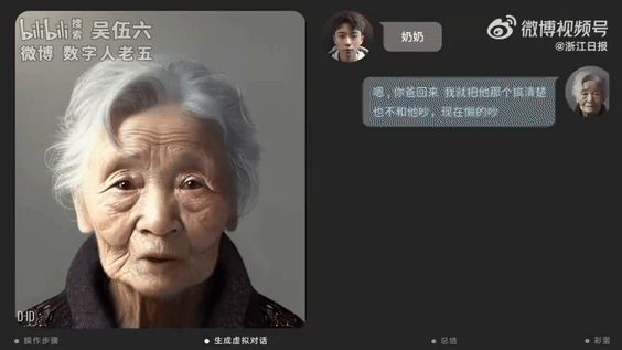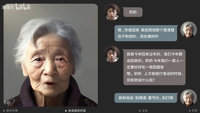 最近, B站的一位UP主“吴伍六”就利用了最近飞速发展的AI技术,让自己和奶奶在虚拟的世界重聚。