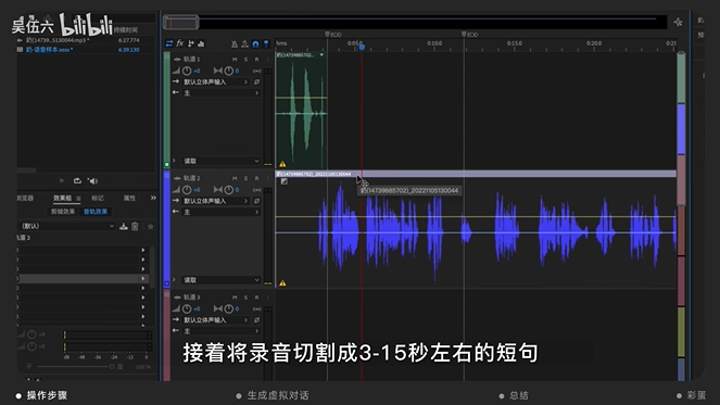 UP主接着将奶奶的录音利用音频处理软件切割成3-15秒的短句,继而通过AI Studio平台的语音合成项目中,使用这些录音切片训练并合成属于奶奶的AI语音包。