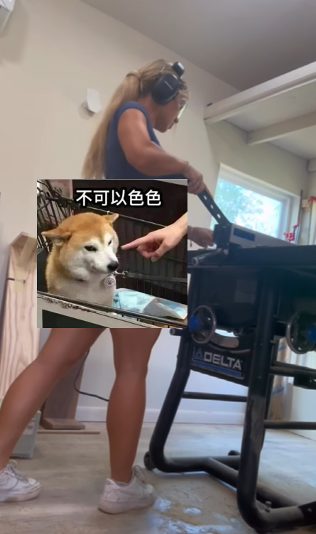 不少视频也会从奇怪的角度出发,在告诉我们如何使用刨削工具将木头磨平的同时,也直观地展示了她因健身而紧绷的大腿和臀部肌肉。