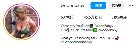 这位叫做“wood baby(木头宝贝)”的用户,喜欢在社交平台分享自己制作木制工艺品的过程。