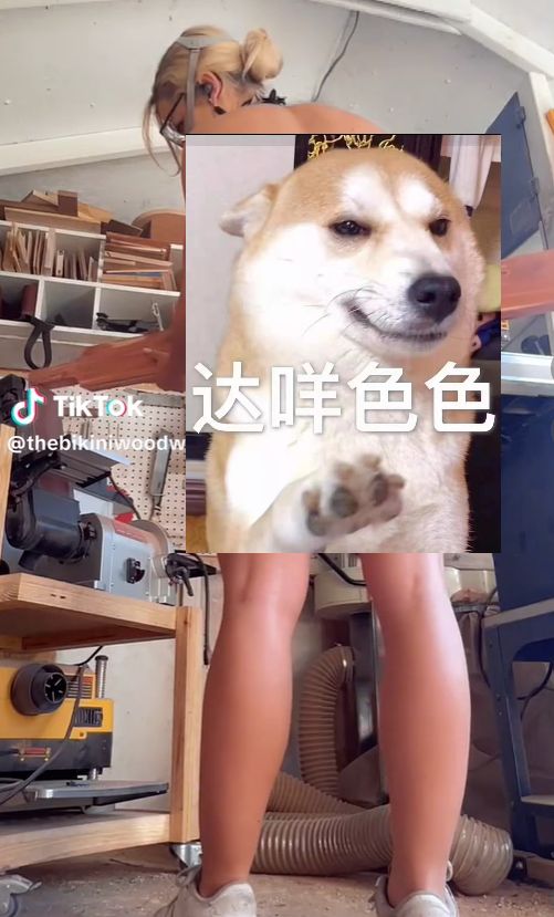 一个是专业的木工设备,另一个则是她身穿比基尼的完美身材。