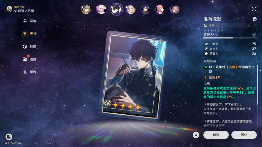 而光锥首先就与职业绑定,只有特定职业的角色才能选择装备,而某些角色还有专属光锥,只有该角色装备才能发挥最大效果。