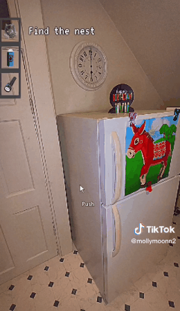 这一身份并不只是背景设定而已,画面左上方会有防毒面具、除虫剂和手电筒等工具选项,主角和场景有非常丰富的交互,更像是在玩一款解谜类的恐怖游戏,你可以吃下爬满虫子的蛋糕,可以在冰箱后面的墙壁中找到一个异次元虫巢,可以选择用手中的杀虫剂清除害虫,或者心一软觉得虫子的命也是命,然后进入BE。