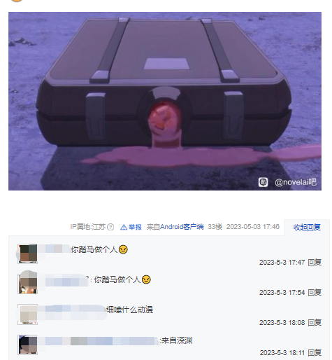 而就在猫鼠队成功在novelai吧打出名号的时候,其他吧友们也慕名赶来纷纷po出自认为最契合原图的动画截图,同样也得到了一致好评。