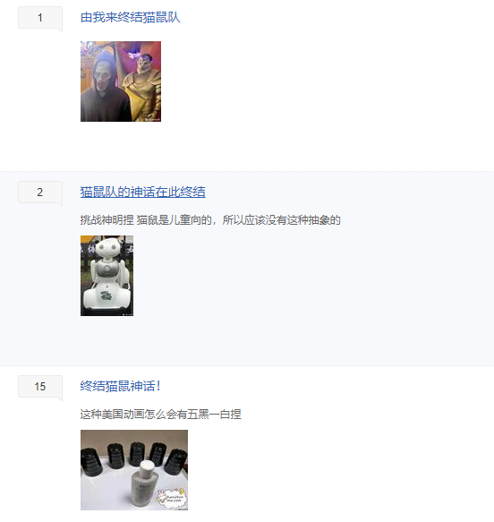 只要你随便在吧里发一张图,万能的“猫鼠队”马上就能够在《猫和老鼠》中找到一张与之对应的吊图。