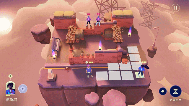 画面中间四四方方的浮岛就是角色们的活动场地,通过左右拖拽,玩家可以旋转浮岛便于更好地观察,如此一番操作颇有一些“纪念碑谷”的味道,不过在这款游戏中并没有设置视错觉版画的玩法。