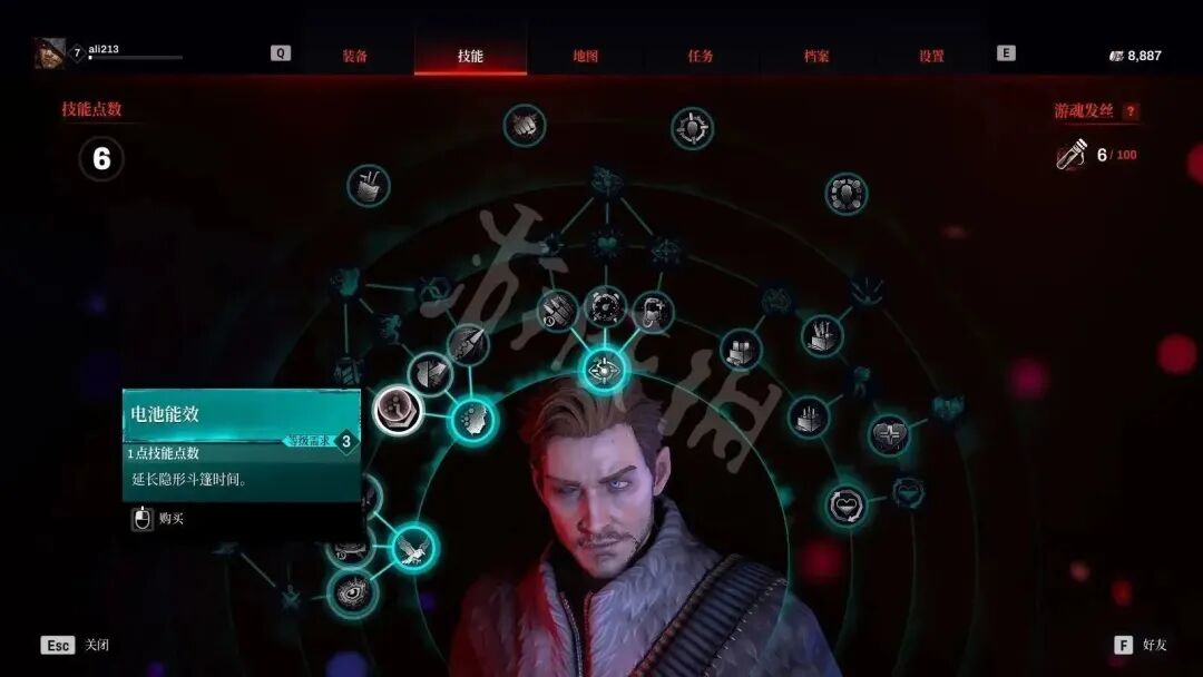 本作共有四名英雄可供选择,技能设定方面偏向团队合作。游戏没有潜行暗杀的设定使得狙击手雅各布的隐身技能变得十分鸡肋,幽灵乌鸦没等发现敌人敌人先找到你了,工程专家雷米的技能更是服务队友。技能树设计可以用“偷工减料”四个字来形容,还是用雅各布举例,幽灵乌鸦通过加点也就是增强了扫描半径和标记时间,额外效果基本可以看做没有。剩下的通用技能也就是增加弹药量和生命值,相比增加技能持续时间和技能范围,这些来的更划算。