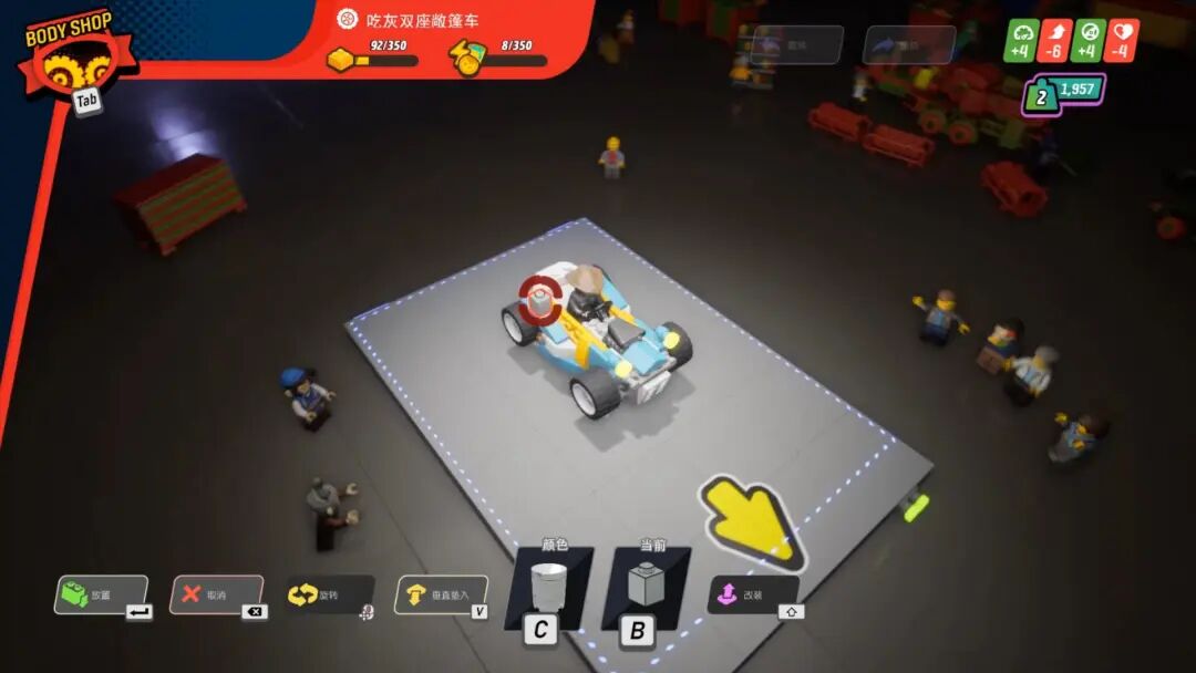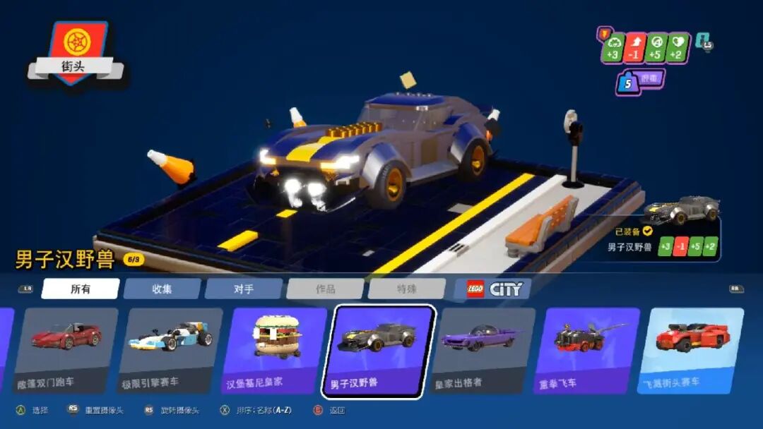 可以在车库搭建属于自己的座驾也是本作的亮点之一,玩家可以充分利用自己的想象力搭建乐高,最终会根据车体乐高块数将车辆分轻型、中等和重型。每种类型的车辆都有不同的驾驶感受,像轻型车漂移幅度大过弯难但加速快,重型车加速慢但容易过弯,相比之下载具属性中的生命值除了救援任务中能承受敌人更多攻击之外就没什么用了。